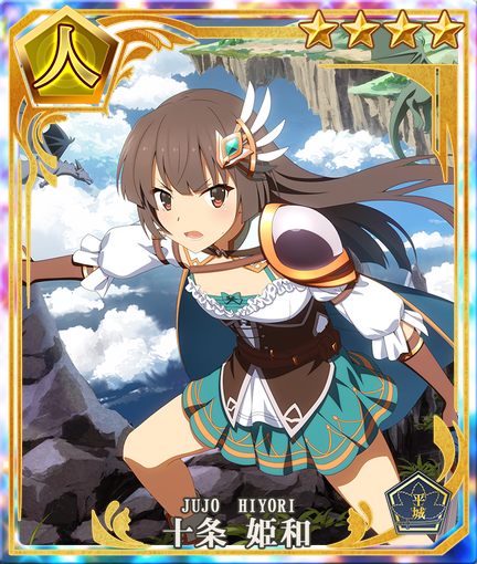 とじともの十条姫和について。(私個人の見解です) 水着18 初期の強キャラ。 3ターン全体奥義が絶対正義の時代。 モーションがかっこいい。 祭祀礼装・禊 祭祀礼装・禊シリーズの中では正直ハズレ枠でした。 ファンタジー 超優秀恒常キャラ。シングル 心のメモリア 十条姫和ソロver十条姫和(CV大西沙織) 18/2/21リリース 十条姫和(じゅうじょう ひより)とは、tvアニメ『刀使ノ巫女』に登場するキャラクターの一人である。 CV: 大西沙織 平城学館中等部三年の十四歳で、主要人物の一人。